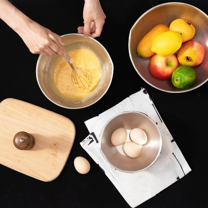 อ่างตีไข่สแตนเลส 304 แบบลึก ชามผสมสำหรับทำขนม เบเกอรี่ และนวดแป้ง